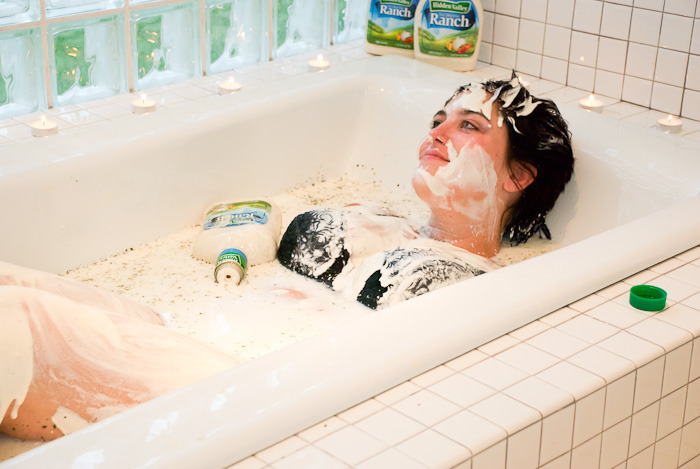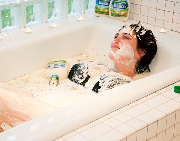 Since American Apparel has such creepy hiring practices and a total lack of clothing for big women (despite a now-shuttered men-only big & tall line), the very pretty (size 12) Nancy Upton has taken matters into her own hands. She’s entered AA’s “XL Model Search” with a series of amazing satirical photos which she’s blogging here. This lady is awesome. Vote for her.