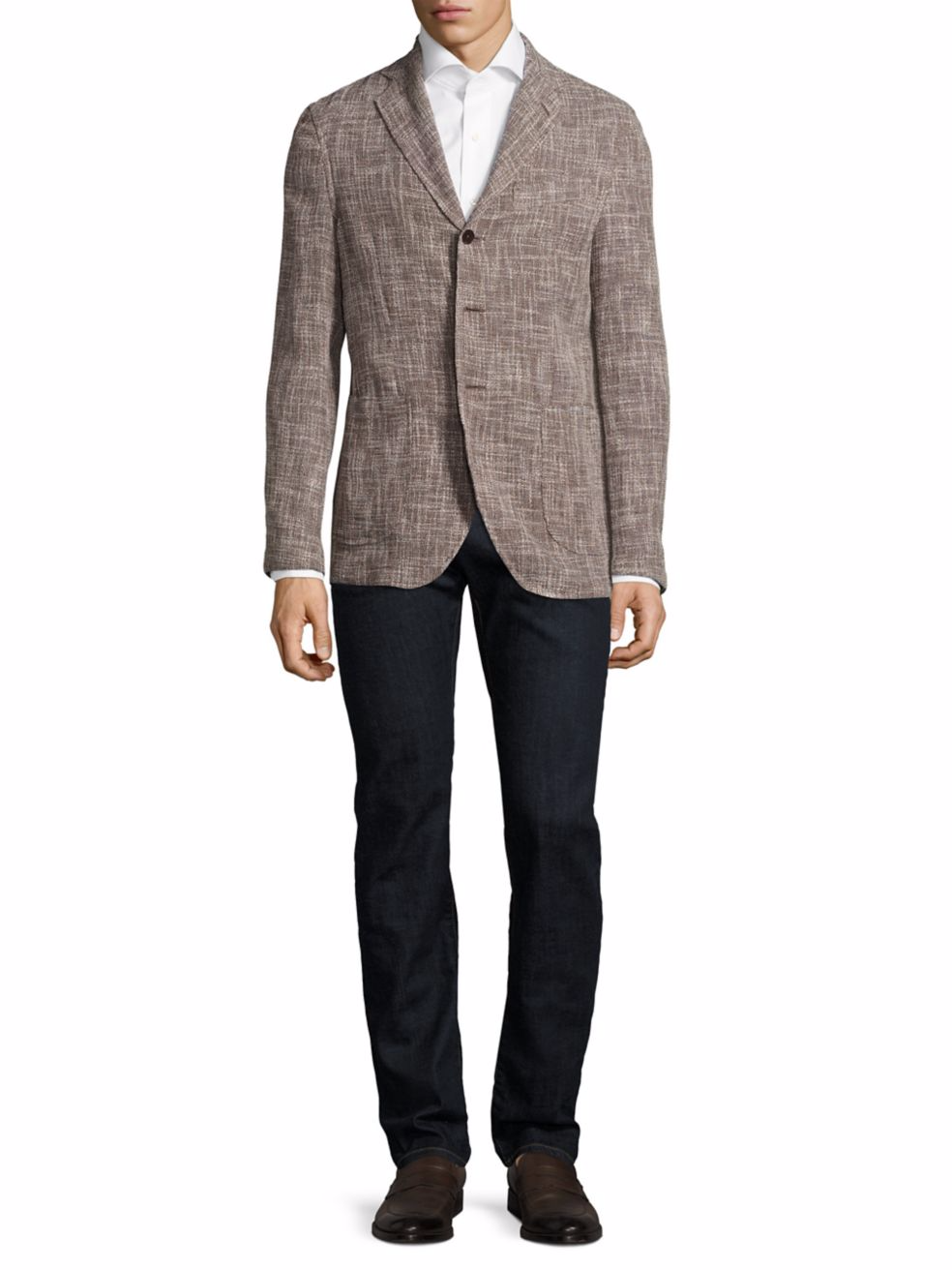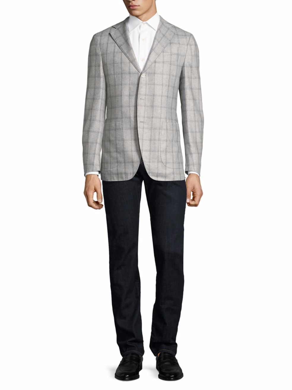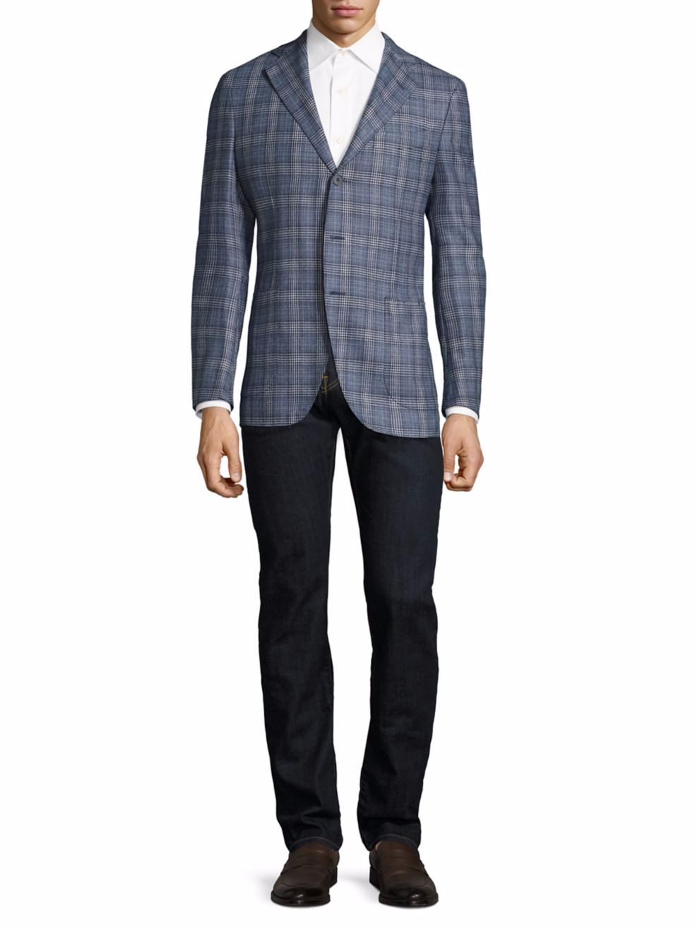 Someone please tell Saks Fifth Avenue how clothes are supposed to be worn. Despite being one of the largest and oldest retailers for luxury-level menswear, apparently not a single person over there – from their model to photographer to the presumably large team of people who handle their e-commerce – know that three-button suit jackets aren’t supposed to only have their top-most button fastened.