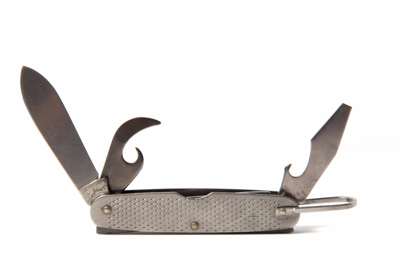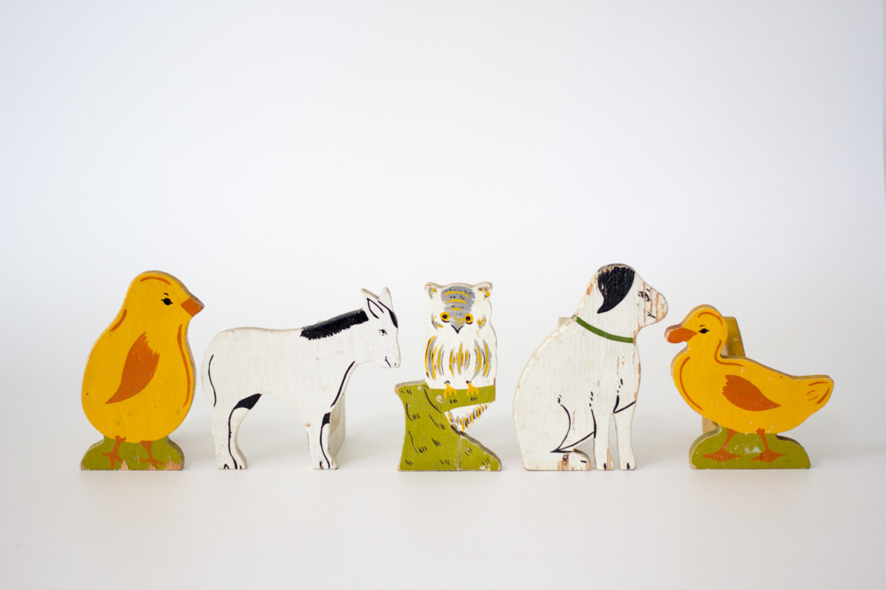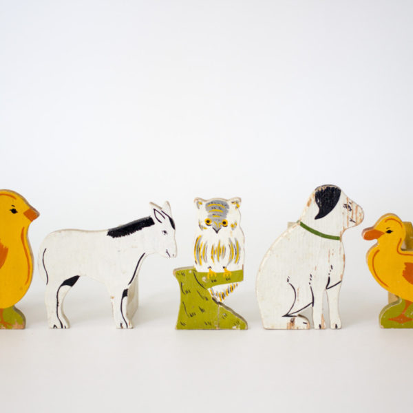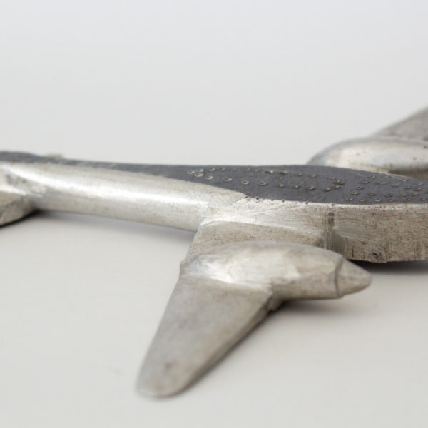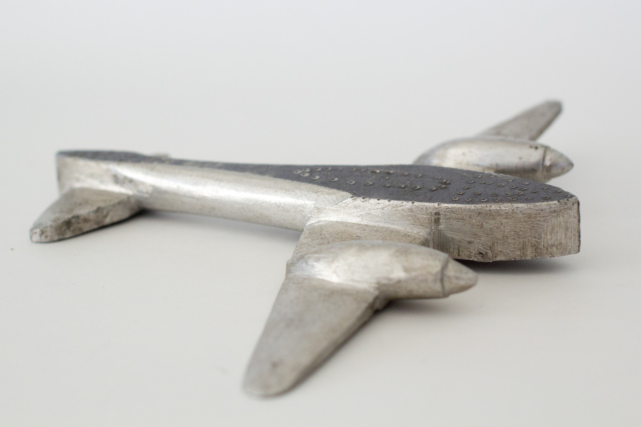 Above: vintage paper soldiers, a beautifully utilitarian pocket knife, keychains made from metal auction tags, a set of handmade napkin rings, some shoe last bookends, binocular eyeglasses and a trench art bomber plane.