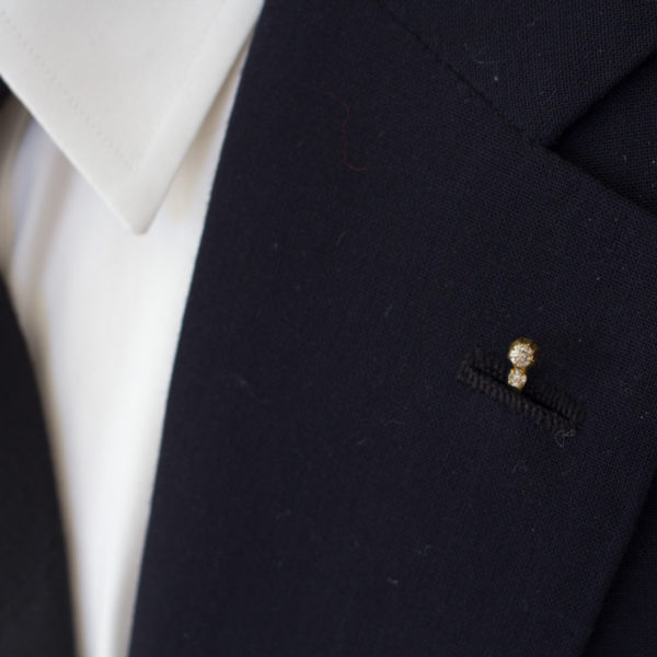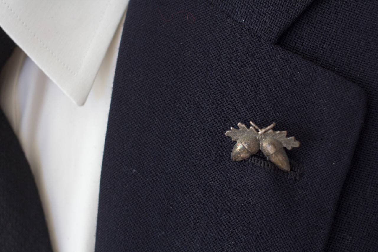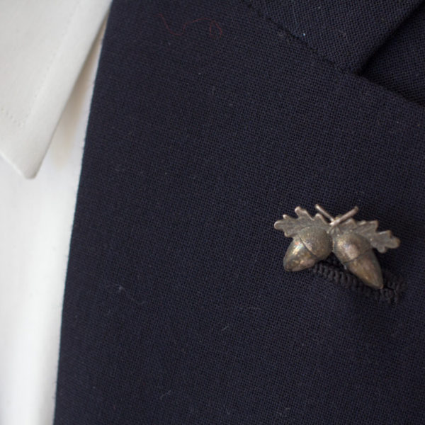 I started wearing a stickpin in my lapel pretty regularly a couple of years ago, and I’ve really enjoyed it. I have a diamond that I wear for special occasions, but mostly I like figural pieces in non-precious metals. Ones like the acorns above. A pearl is nice, too – goes with everything. If the jewel isn’t too intense, it can be a nice compliment to a pocket square, rather than a replacement. It’s tough for men to wear jewelry, especially if you don’t wear double-cuff shirts. Stickpins are a nice way to incorporate something special into your wardrobe.