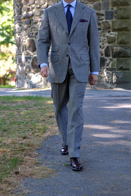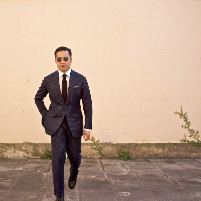 Some will say this is part of Italian style, where – especially in the southern parts of the country – people like the lower parts of their jackets to sweep back towards their hips. This is false. See Mariano Rubinacci, who heads-up the most famous tailoring shop in Naples, or Ethan Newton from Bryceland’s, who’s wearing a jacket from Liverano & Liverano here. You can have slightly more open fronts without showing the bottom half of the shirt. It just requires good tailoring.