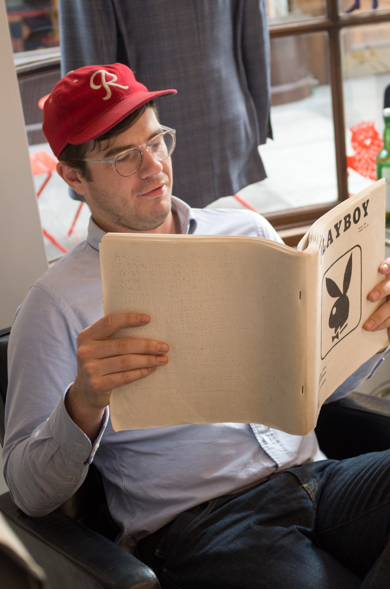 Among the cased accessories were some favorites of this blog, like the Junghans Max Bill wrist watch and Braun travel alarm clocks. There’s also a small browsing library of books on style (and lifestyle) from the owner’s personal collection, which included the braille edition of Playboy that our director Ben is reading above. There are also books and magazines for sale, including new copies of The Heritage Post, The Rake and Monocle and back issues of Japanese favorites like Vintage Life.