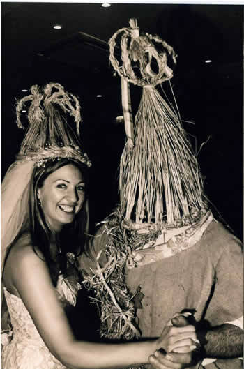 Apparently, they’ll dance with the bride and entertain guests with songs, etc. Sometimes these are local dudes who really weren’t invited, sometimes they’re wedding guests who will afterward wander back in more normal attire. It all seems generally good-natured, maybe the Irish folk equivalent of wearing a lampshade on your head. And it’s supposed to bring good luck to the happy couple. That seems like a good way of getting hosts to accept your party crashing: “We’ll show up, dance with your wife, recite limericks, and leave straw all over the dancefloor, but it’s good luck for the marriage!”