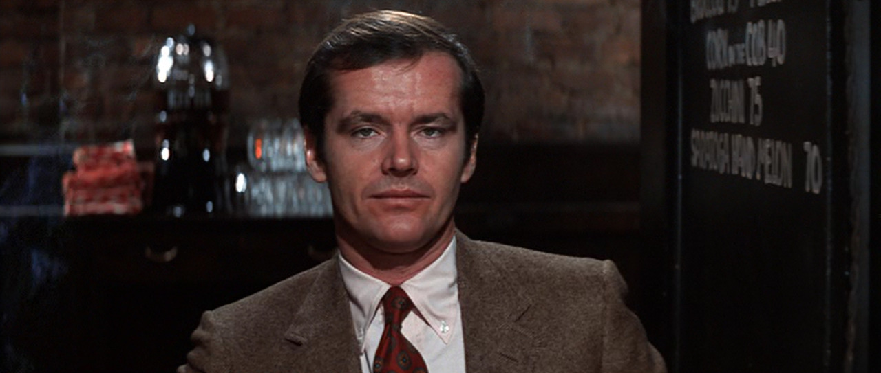 - Five Easy Pieces (1970)–Nicholson plays the son of a well-to-do, artistically oriented family who’s dropped out to work oil rigs in Texas, and as the film progresses he leaves the blue collar world to go home. Meaning he gets to wear both great chambray and plaid workshirts and turtlenecks with corduroy sportcoats. Nicholson was nominated for his first Oscar for the role.