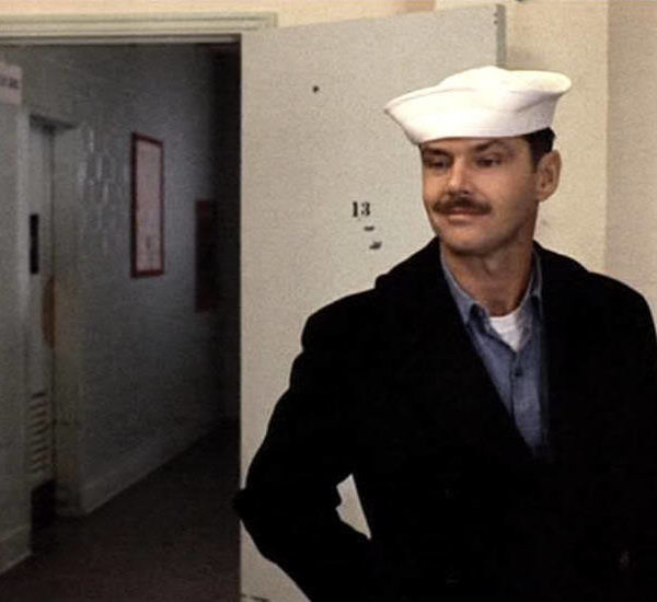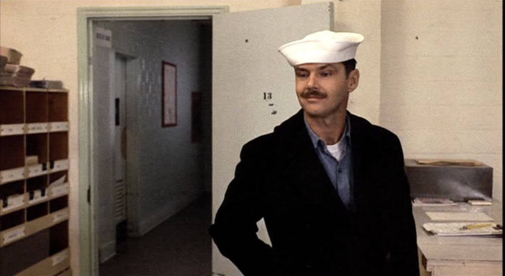- The Last Detail (1973)–In Hal Ashby’s sailor road trip film, Nicholson spends most of his time in a peacoat and “dixie cup” hat. Good use of chambray and a popped peacoat collar.