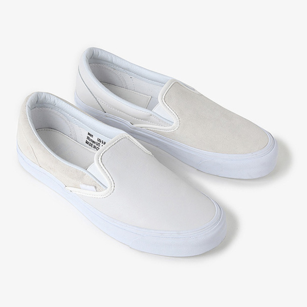 - Vans Slip-Ons: Yes, we’re all sick of the meme, but never the shoe. The classics come in white canvas and checkerboard, but I’ve been digging the ones made from tan wool, blue suede, and mismatched panels. The last model will be available starting tomorrow at Nepenthes.