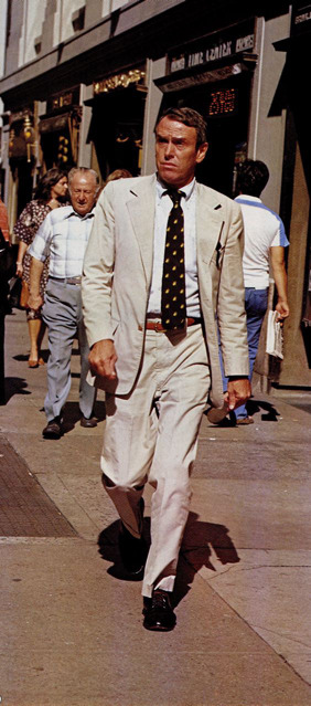 Our reviews of modern oxford cloth button down shirts will come later this week, but in the meantime, I thought I’d share these great photos I found in some old posts at Heavy Tweed Jacket. They were originally taken from 1978 and 1981 issues of Men’s Club (a Japanese men’s style magazine) and feature various New York City businessmen sporting a classic American style of dress. Notice the handsome rolls on the button down collars. These kinds of expressions are a bit rare to see nowadays since many manufacturers make shirts with shorter collar points, resulting in something like this.