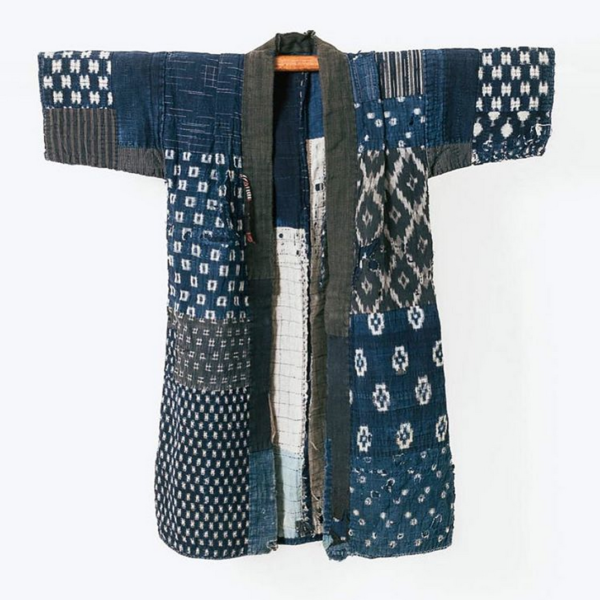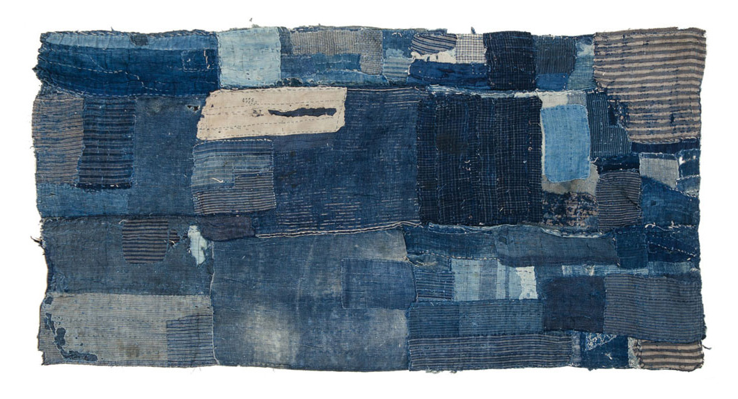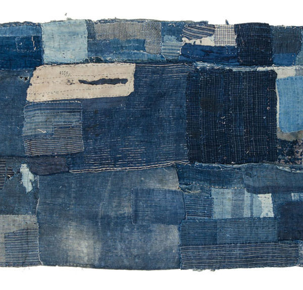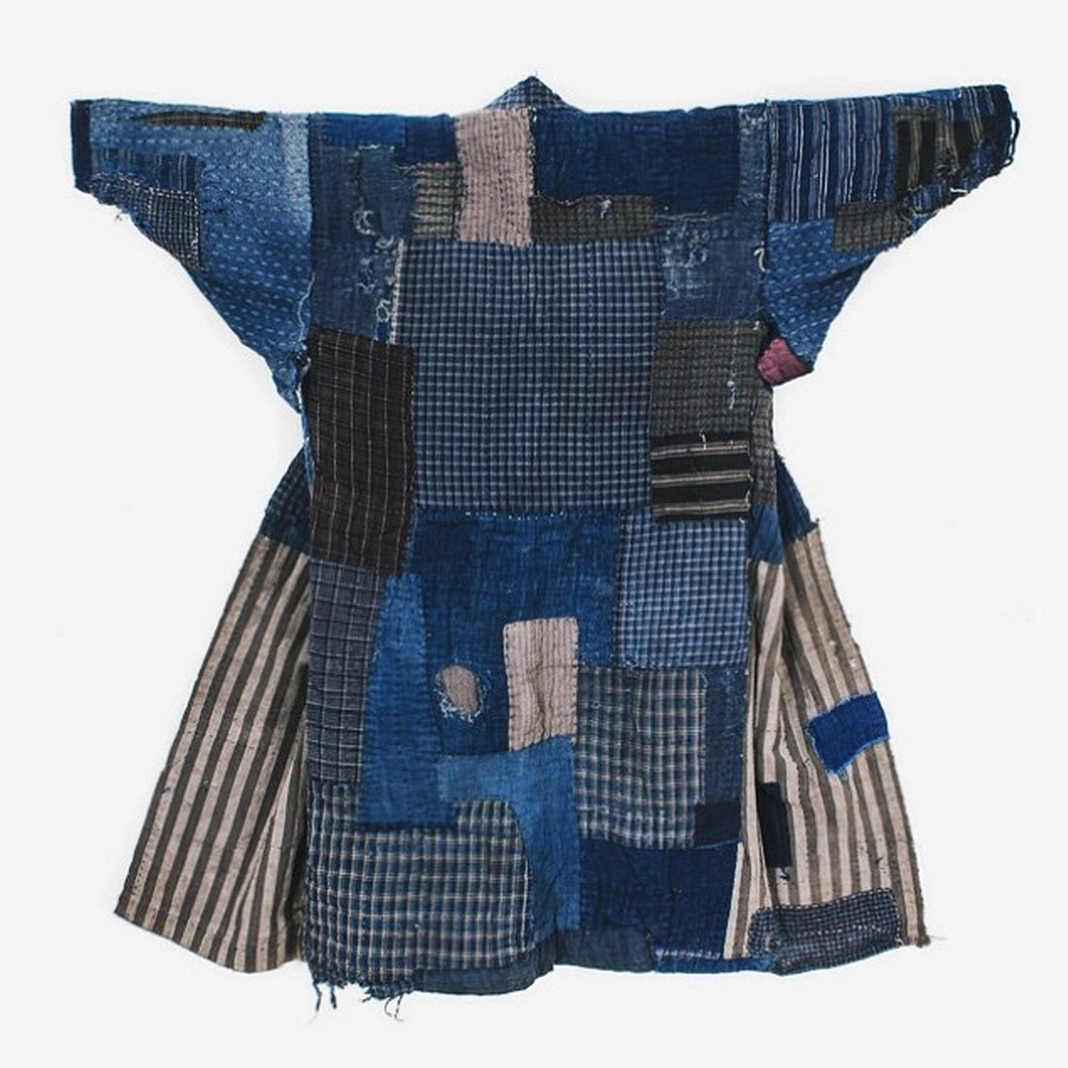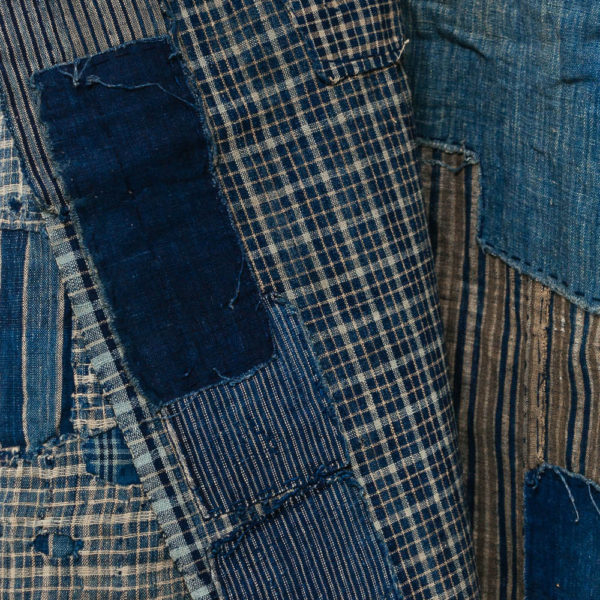 Pictured above: A boro futon cover that has been heavily patched and mended using an array of fabrics – from striped to solid-colored cottons. Also a farmer’s work jacket, known as a noragi, which has been patched together using dozens of late-19th and early-20th century rags.