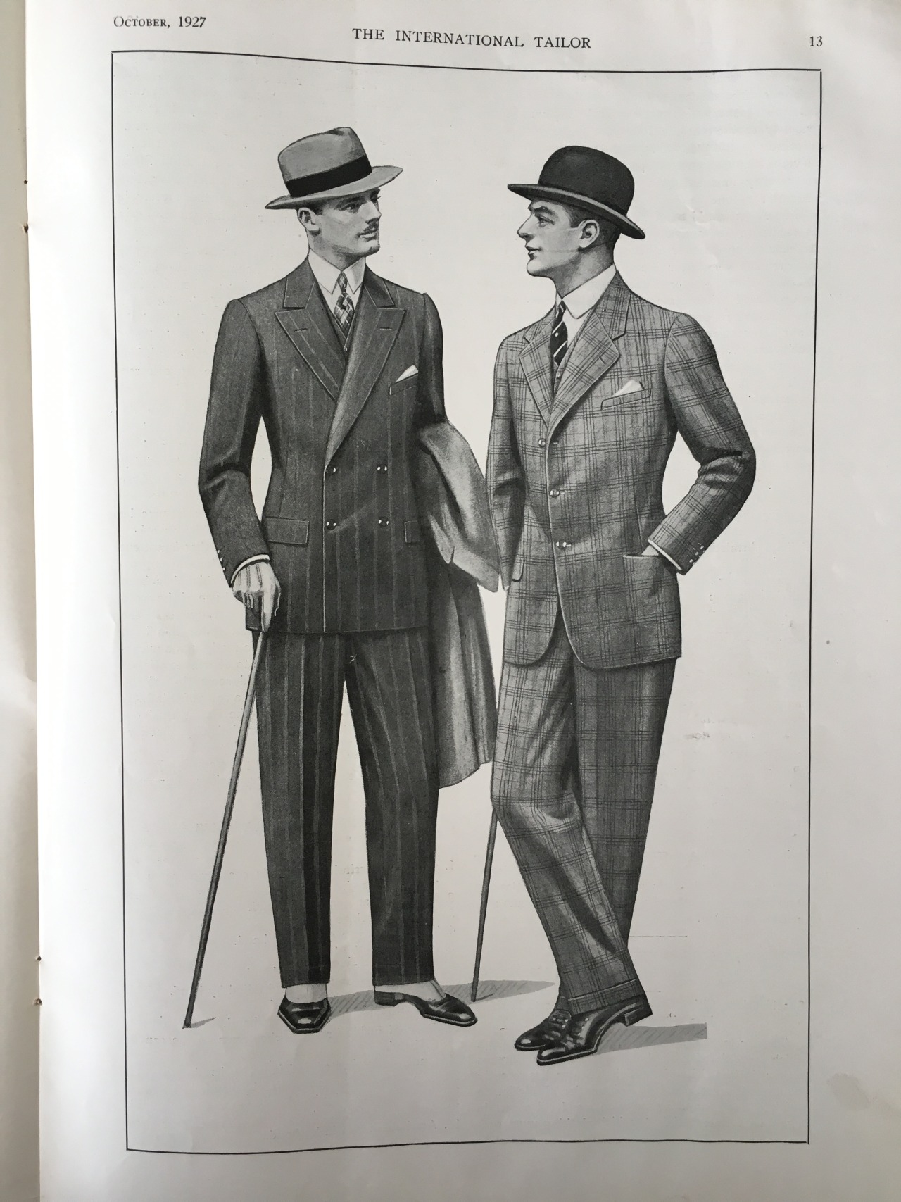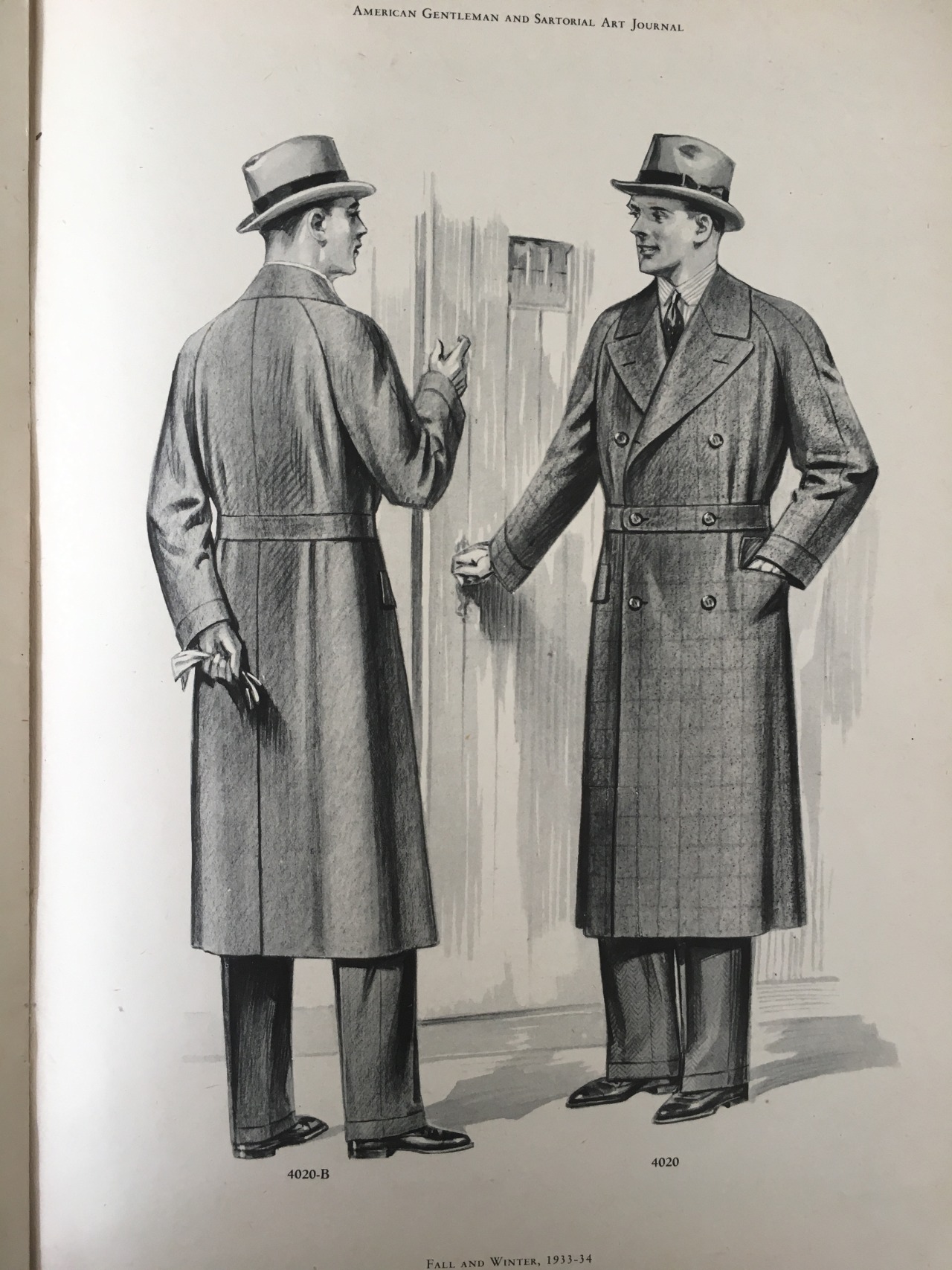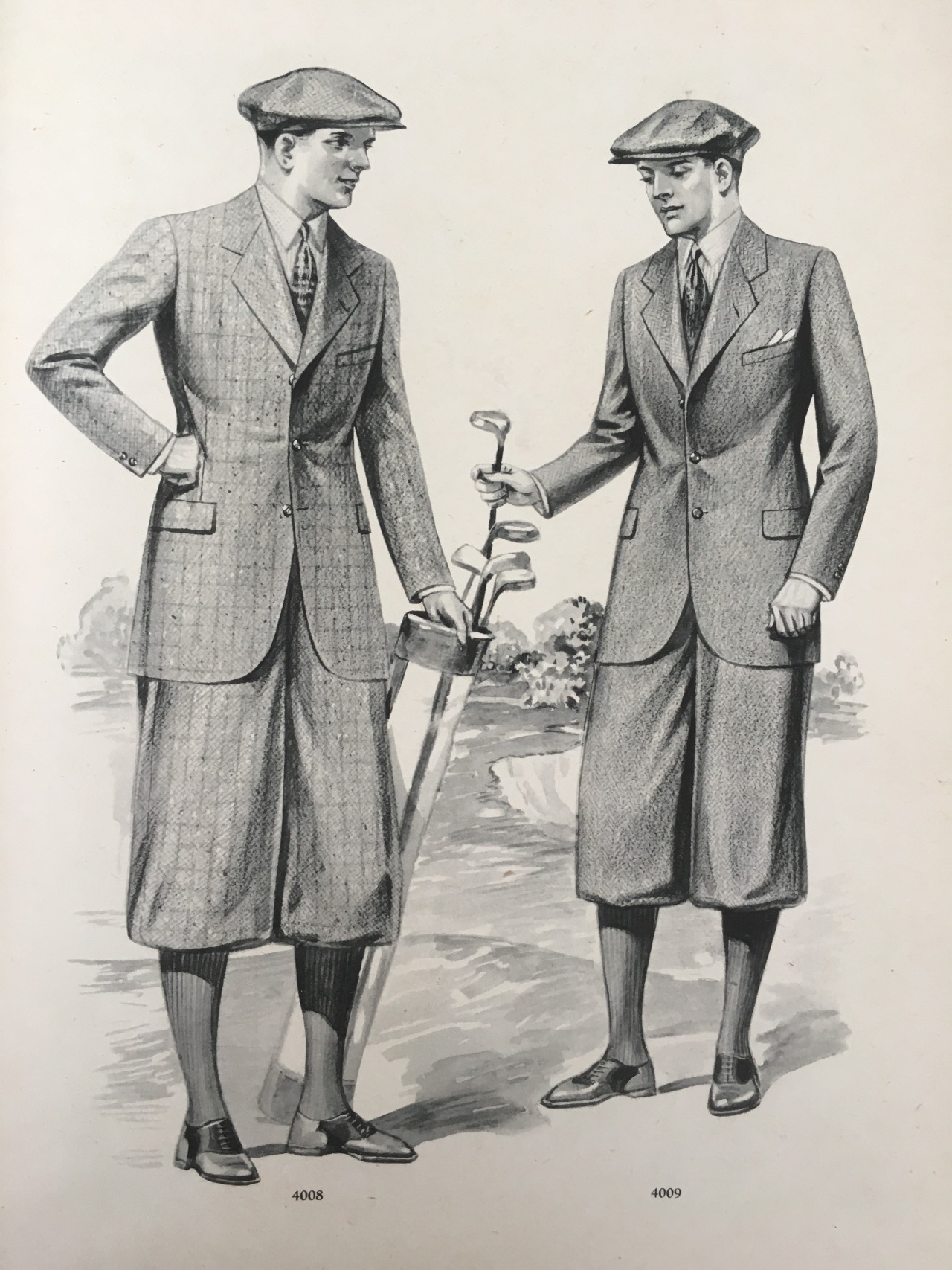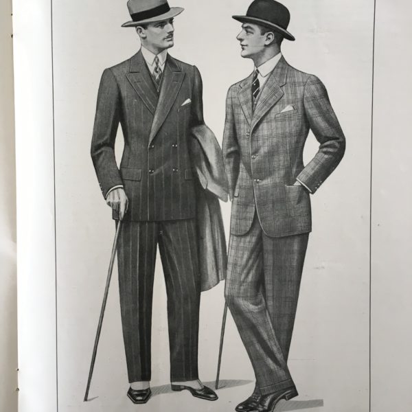 A lot of what we have from that period are illustrations, not photos. Many of the popular ones were published in earlier issues of Esquire and Apparel Arts (the second being a trade publication that would later morph into GQ). Others can be found in brand catalogs, such as those from Brooks Brothers, LL Bean, and Hart Schaffner Marx. Pictured above are some pages from old tailoring magazines that really typify the gorgeousness of illustrations back then.