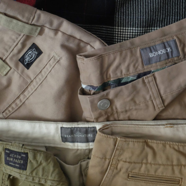 My favorite non-denim pants? Probably a pair of vintage Christmas-y faux-patchwork from Brooks Brothers. The cut is objectively bad but they’re a hit at parties. I wear those once or twice a year. I wear suits a couple of times a month, and real, like, Die!-Workwear-approved trousers once or twice a week. Most work days you’ll find me in off-the-rack cotton khaki pants. The color range is narrow, from stone to putty to olive drab. Go-to-hell pants are great; bespoke pents are great; but I want my everyday pants to be great, too. So what are the best everyday pants?