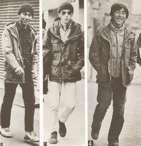 [Men’s Club columnist] Kobayashi believed that Heavy Duty and Ivy were two sides of the same coin. Both were “systems” of clothing – a wide set of traditional garments worn according to the time, place, and occasion. Inside the Ivy system, students wore blazers to class, duffle coats in the winter, three-button suits to weddings, tuxedos to parties, and school scarves to football games. Inside the Heavy Duty system, men wore LL Bean duck boots in bad weather, mountain boots when hiking, flannel shirts when canoeing, collegiate nylon windbreakers in spring, rugby shirts in fall, and cargo shirts when on the trail. In the introduction to his standalone Heavy Duty Book, Kobayashi wrote: “I call Heavy Duty ‘traditional’ because it’s the outdoor or country part of the trad clothing system. You could even say it’s the outdoor version of Ivy.”