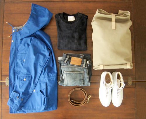 How to wear the jacket? Pair one with chinos, prickly sweaters, oxford shirts, and Bean boots, like the 1970s students pictured above. For something less preppy, try one of the rugged, workwear versions with a grey sweatshirt, some jeans, and a pair of workboots, or use one of the updated, contemporary models with a textured sweater and some clean sneakers. My own parka, the royal blue Nanamica in the last photo, is pictured with a Stephen Schneider sweater, pair of faded 3sixteen jeans, and some Common Projects b-ball high-tops.