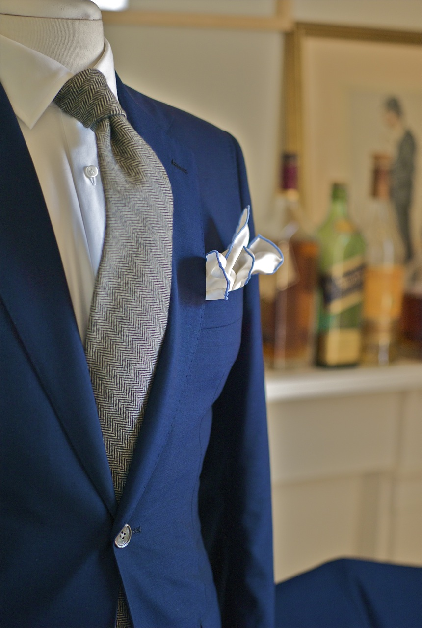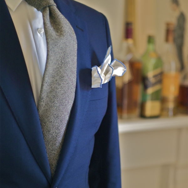 Next, I thought I’d cover the two basic ways you can add some panache to how you tie your tie. The first is the Italian method – pulling it to the side a bit and leaving the blade out of the keeper. If you have an extra long tie, you might even want to leave the back blade a big longer than the front. The other method is arching your tie, a technique I always use now. It used to be a knee-jerk reaction to seeing guys leaving their ties loosely tied, a look so juvenile and awful that I cringe even just thinking about it. Nowadays, however, I just like the panache it gives. In this technique, the tie lifts off from the shirt. The photograph I’ve chosen exaggerates it a bit; in practice, the tie ends up looking a bit more like this or this. As Hardy Amies once put it, these kind of ties “come into a room almost before the man."