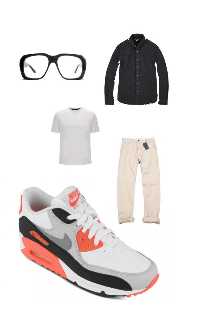 Above is what I’m wearing on a cool morning in Southern California. Literally a white t-shirt, khakis, and a black chamois shirt. Add some bold sneakers and sunglasses and you have distinction.