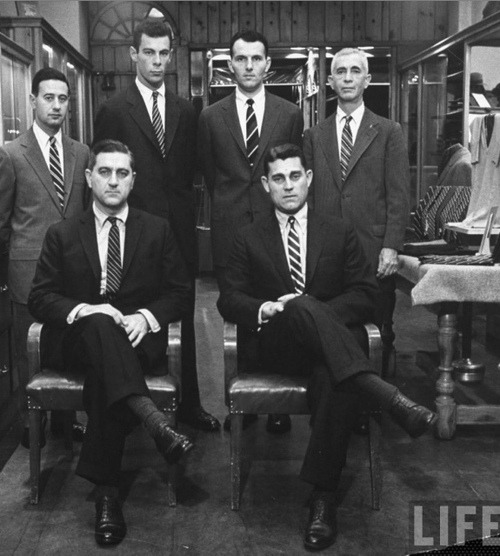 The social meaning of these ties has largely been lost, so men can mostly wear whatever they want today. If you feel sensitive about it, however, you can always opt for the American way. British rep stripes typically run “up” when facing the wearer, such that the stripe is low on the left, then high on the right (see the first photo above). When Brooks Brothers started making their rep stripes nearly a hundred years ago, they didn’t want to offend their British counterparts, so they reversed the direction. American rep stripes mostly run “down” – high on the left and low on the right (see second photo above). Frankly, I think the American design looks better.