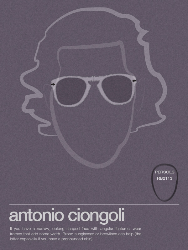 • Oblong: If you have a narrow, oblong shaped face with angular features, wear frames that add some width. Broad sunglasses or browlines can help (the latter especially if you have a pronounced chin).