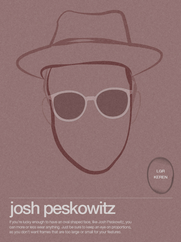 • Oval: If you’re lucky enough to have an oval shaped face, you can more or less wear anything. Just be sure to keep an eye on proportions, as you don’t want frames that are too large or small for your features.