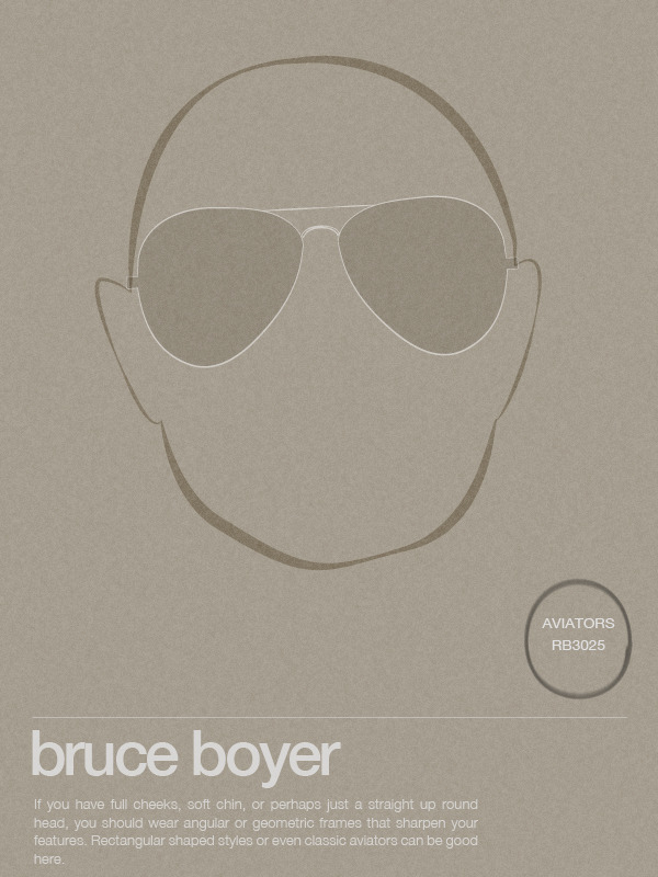 • Round: For full cheeks, soft chin, or perhaps just a straight-up round head, wear angular or geometric frames that sharpen your features. Rectangular shaped styles or even classic aviators can be good here.