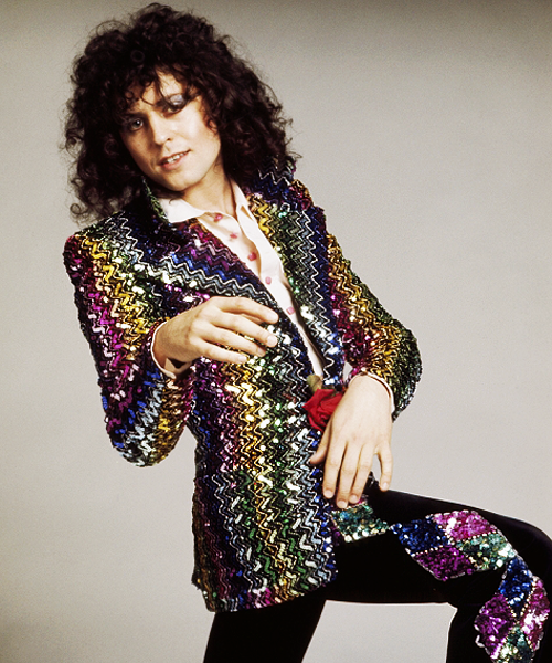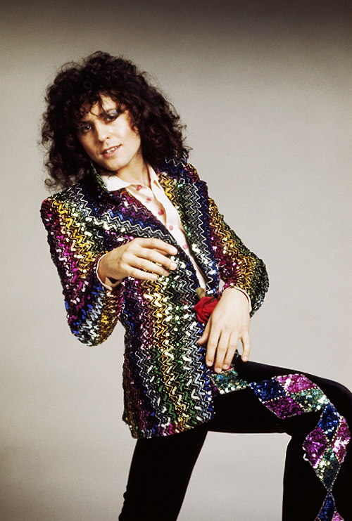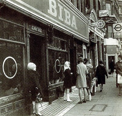 Biba made its name initially selling dresses via mail order, but by the 1970s outgrew its boutique space and took over a seven-story department store in Kensington High Street, filling it with men’s, women’s, and children’s clothing and even food; an early example of lifestyle marketing. The taste cultivated by Hulanicki and the Biba crew was focused but eclectic—signage was carefully designed and hand-painted to echo the architectural details in the building, built in 1932. The wares verged on fast fashion, with Biba churning out Victorian dresses, big-collared men’s shirts, and miniskirts, all at accessible prices. It catered to the growing glam rock scene, with louche stars like Bryan Ferry of Roxy Music (shown elegantly zonked at Biba in this photo from 1973) and Marc Bolan (T Rex, photographed in a sequined Biba jacket) shopping and hanging at Biba; the New York Dolls played there.