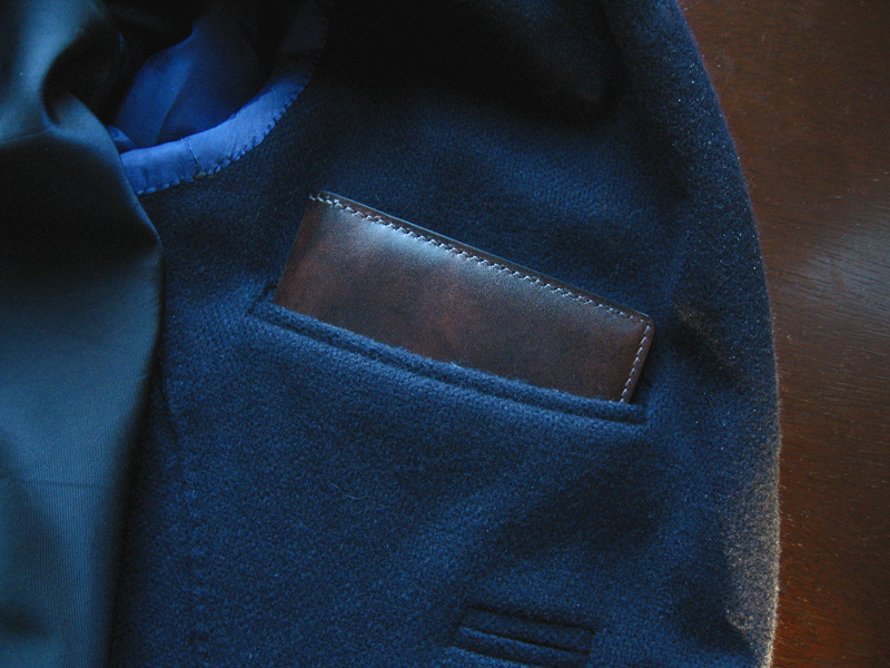 If you’re not deterred by the price on the museum calf wallet, you can also find really nice models from Valextra and Smythson, both of which can be found at Barney’s. Those are cut a bit more like coat wallets, which is useful if you don’t want to fold your travel tickets, but the length also restricts the wallet to the inside of your coat pocket (whereas the Chester Mox one can be slipped into the back pocket of your jeans if necessary). Brooks Brothers also has something with a long interior pocket, and Ettinger has various models made from their signature English bridle leather (a thicker, stiffer material that’s as hardy as it is handsome).