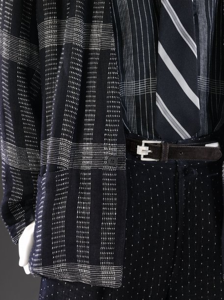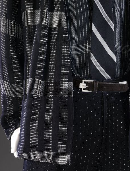 The Versace clothing, what we can see of it anyway, looks very much of its time, but I see some resemblance to Japanese textiles I like more and more. The subtle blue and green-blue shades of those fabrics don’t, to me, need other tones to break them up. Taking a broader view of the currents of men’s clothing, I’ll be the first to admit that designer stuff is not my baliwick, but it’s hard to deny the vision of a guy like Rick Owens, who’s made a career on tonal palettes that vary all the way from dust to stone to sand.