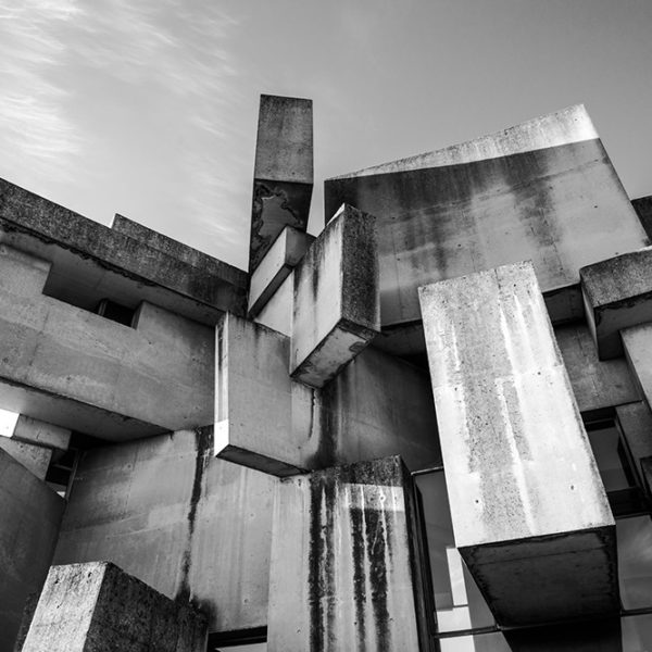 Brutalism was a school of midcentury design that specialized in the rawness of material. As such there were a lot of concrete blocks, hard edges, and overlying shapes. This wasn’t about looking “pretty” as a lot of design emphasized- even the streamlined minimalist midcentury schools were prone to curves and comfort. Brutalism was cold and serious and, in its own peculiar and imposing way, beautiful.