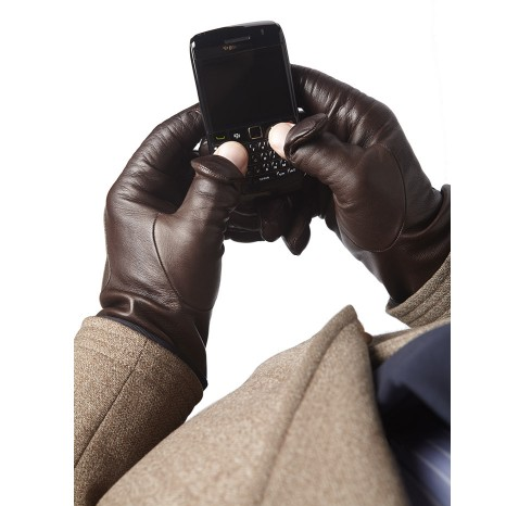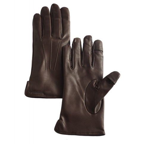 The best I’ve found are leather gloves, which in recent years have come with various gadget-friendly solutions. The simplest are by Pengallan and Land’s End, where there’s a slit in the index finger that allows you to operate your devices. The Pengallans are nice in that they’re made with a horizontal slit instead of a vertical one (which is what the Land’s End model features). This allows you to more easily pull the leather back when you need to push the tiny buttons on your cell phone. There are also gloves that are conductive through leather. You can purchase those through Isotoner or Dents (the second being also available at Mr. Porter), or have them custom made through Chester Jefferies. Chester Jefferies makes great custom gloves if you send them a tracing of your hand, but for better results, I recommend submitting a photocopy. That way, you won’t get any errors from changing the angle of your pen as you trace.