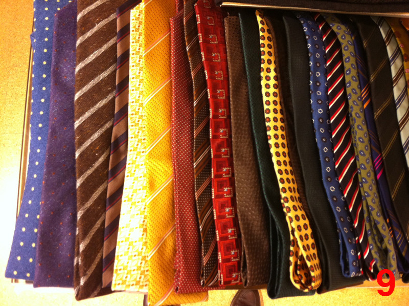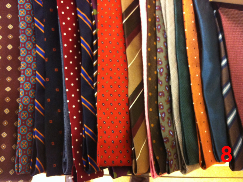 • Lots and lots of ties from brands such as Luciano Barbera, Zegna, Nicky, Seaward & Stern, and Altea. There’s also a couple of E. Marinellas left, but not many. Prices for these are about $45. For ease of ordering, I’ve included ten photos of some of their inventory. When you call, you can tell them something like “I want the brown tie on the left hand side of picture 8” (or something like that). Note, in pictures 1 and 3, those are mostly wool knits, but there are some in silk.
