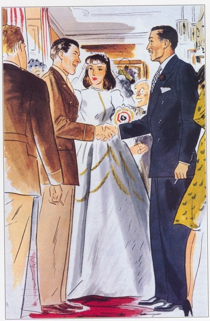 In the evening in the US, it is appropriate to wear white or black tie, particularly if your wedding isn’t taking place in a church. I went to a New Year’s Eve wedding a few years ago in a naval mansion, and it was lovely to see the gentlemen in black tie. If you think you and your guests can execute white tie, then I encourage you to give it a shot, but rare is the party that can do such a thing these days, unless you and your betrothed met at a Swiss boarding school for the children of ambassadors or something. I’ve written about the standards of black tie already, here.