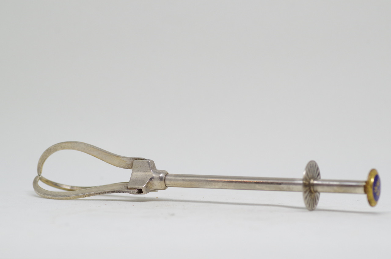 - A metal kazoo in the shape of a saxaphone.
