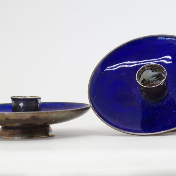 - A gorgeous pair of Danish silver and enamel candleholders.
