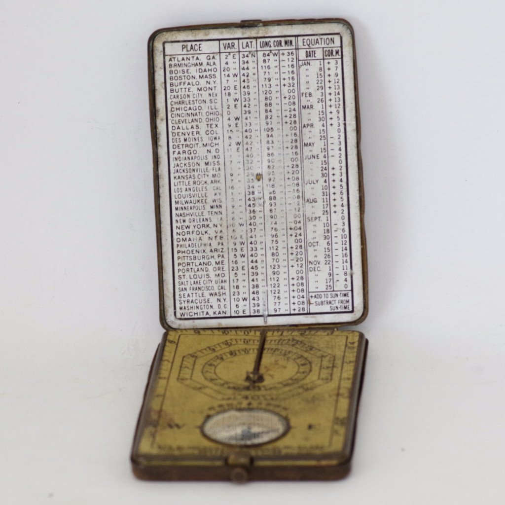- A portable compass and sundial from the early 20th century.