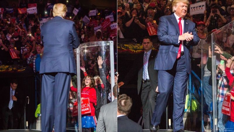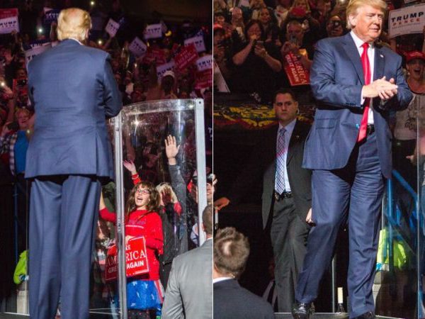Donald Trump has been an unusual politician, not just in terms of his politics and ability to survive controversies, but also in the way he dresses. At least since the ‘90s, major party candidates have strived for a more relatable, business-casual look. That means: suit pants with no jacket, sometimes with the shirt collar unbuttoned and worn without a tie (if there is a tie, it’s often loosened). Shirtsleeves are also usually rolled up to show the person “gets down to business.” See these photos of Mitt Romney, George W. Bush, Bill Clinton, and Barack Obama on their campaign trails for examples.